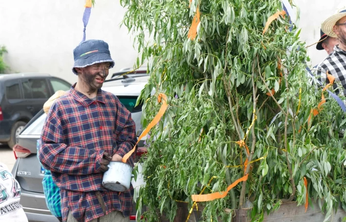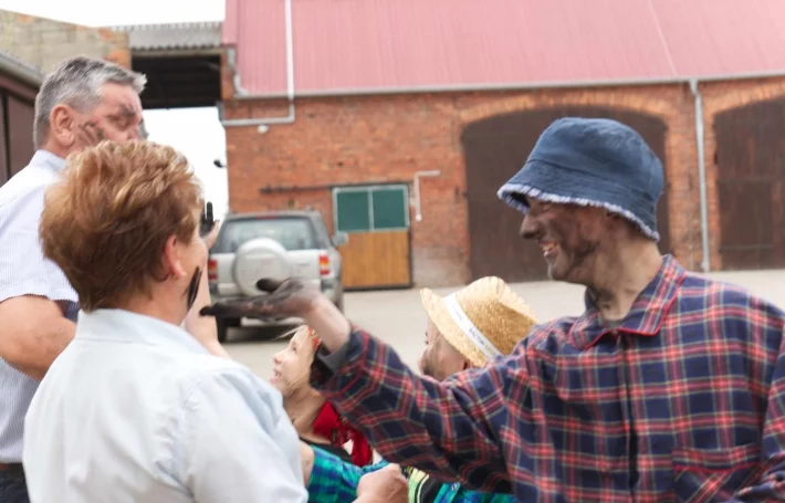 Niektórzy gospodarze też uczestniczyli jak byli młodsi w takich pochodach, sami się sadzą smarowali, rzucali błotem, więc dla nich też jest fajne zobaczyć, jak się to zmieniło z biegiem lat, ale też jak... my też chcemy to reaktywować, ale zarazem trochę unowocześnić. (Tobiasz Maciejak)